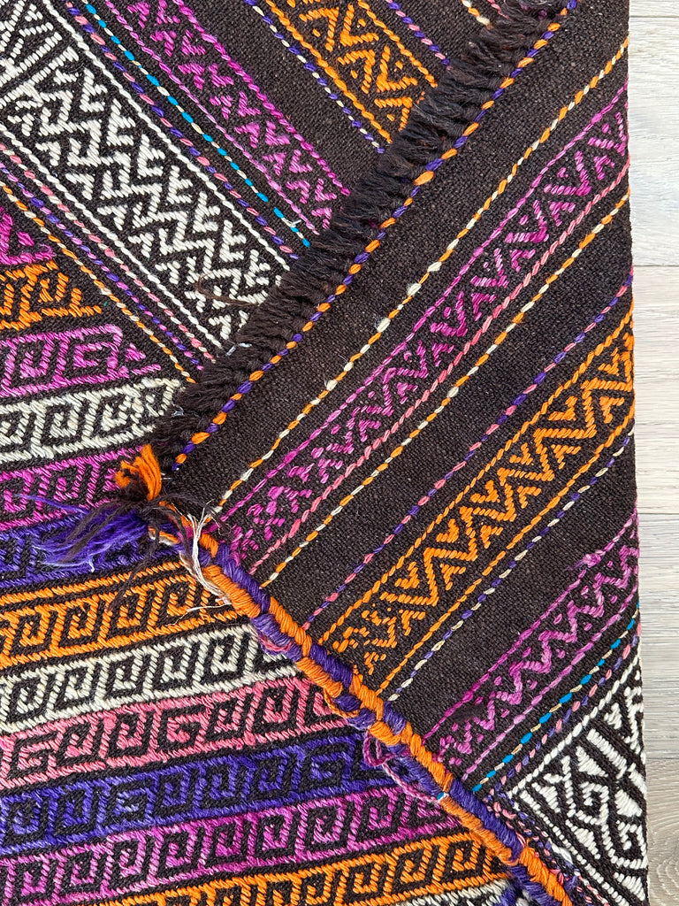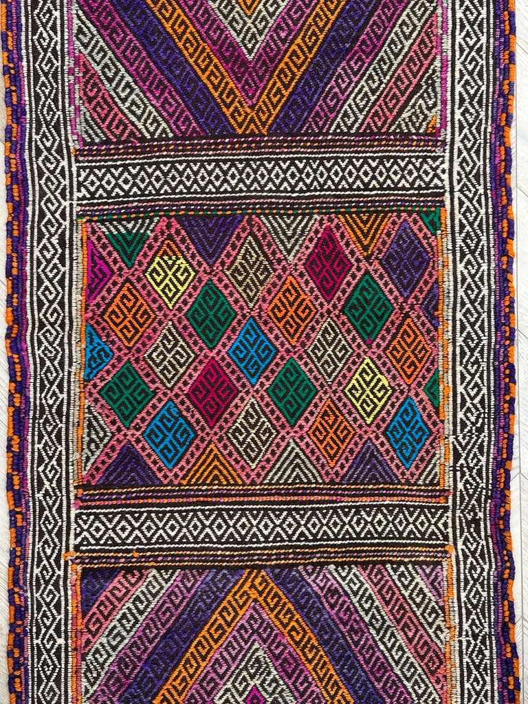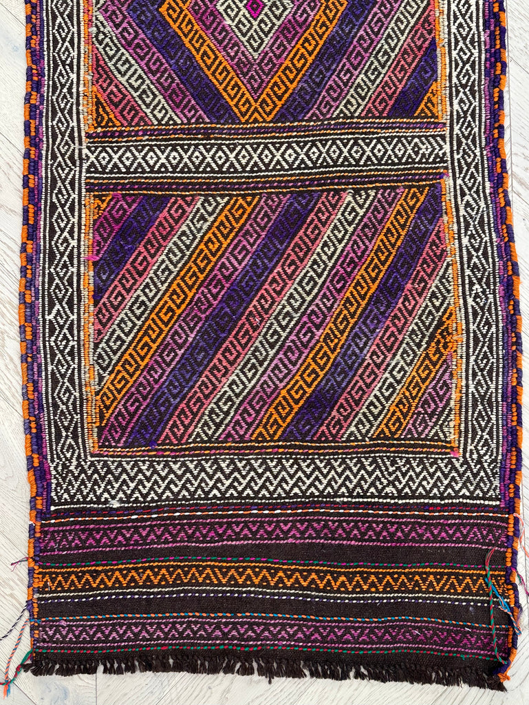 Enhance the appearance of your home with our expertly crafted Chobi Kilim. Made with gentle wool and organic dyes, this one-of-a-kind runner adds a cozy and charming feel to any room. Discover the enduring elegance and craftsmanship of this exquisite rug.