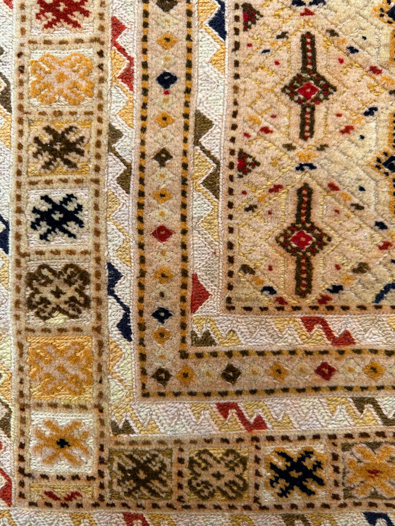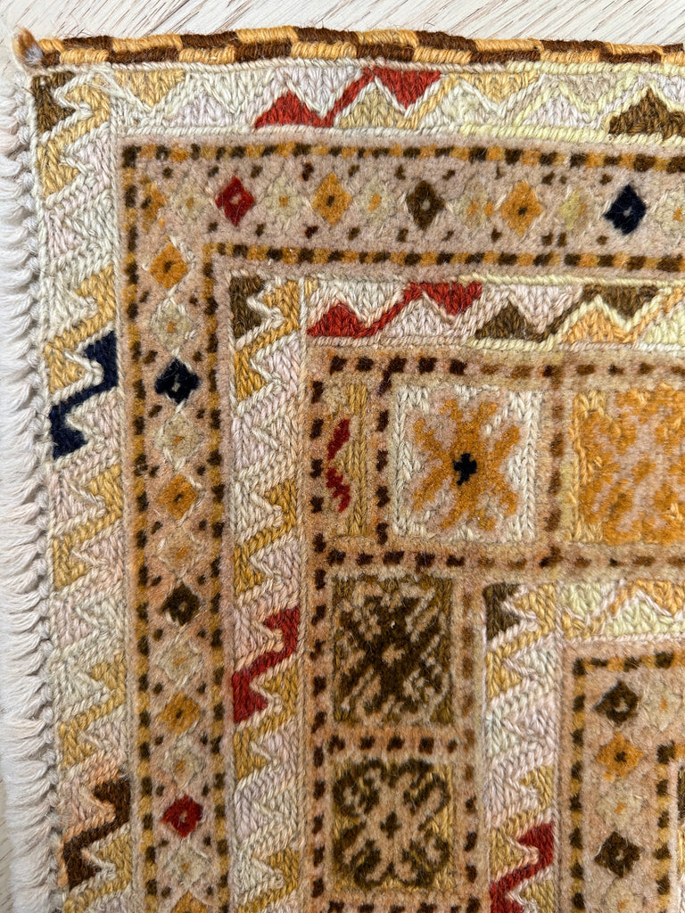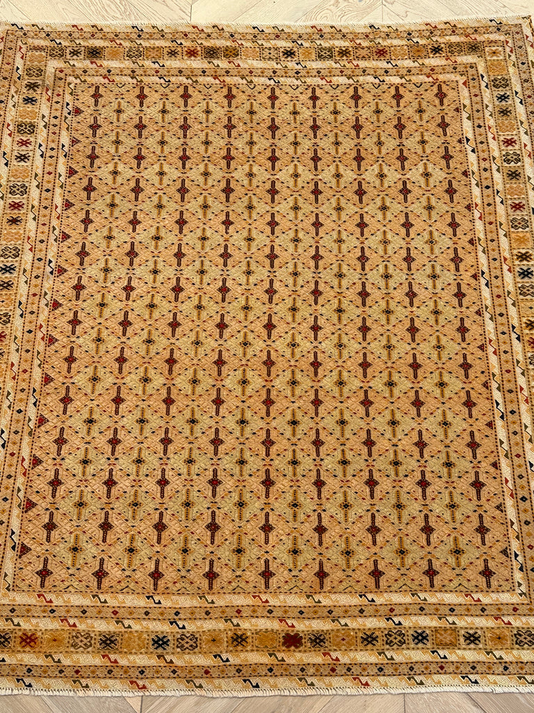 Wonderful tribal area rug woven by the people of Afghanistan with a weaving structure included knotted piles. It is 100% wool and painted with natural vegetable dyes. This is extremely soft and well-made afghan rug with an amazing craftsmanship. It has an eye catching color and design from cultural background which makes it a perfect addition to your home and living.