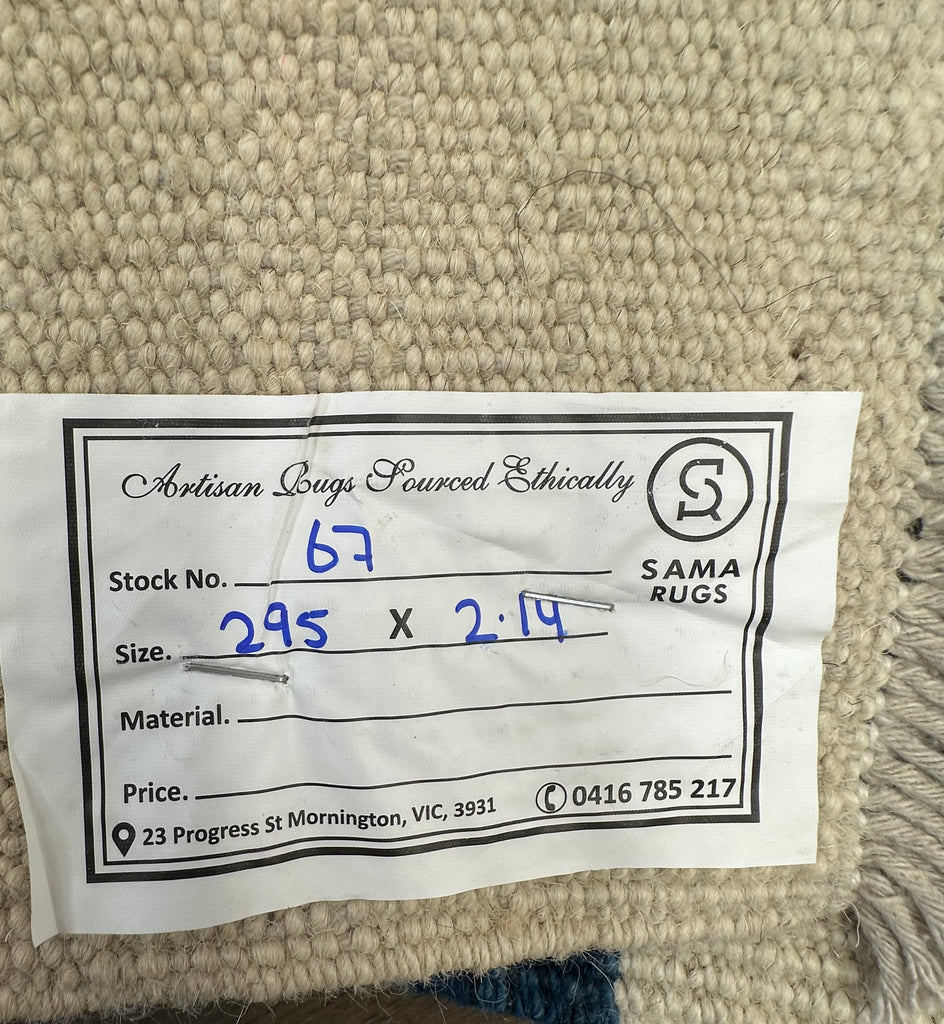 This exquisite 295x214 cm rug is finely crafted with high-quality wool and boasts a Soumak weave native to Herat, Afghanistan. Handmade by talented artisans, its dynamic geometric designs add character to any space. Whether displayed on the floor or wall, this versatile rug is a must-have for any home.