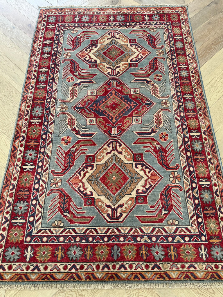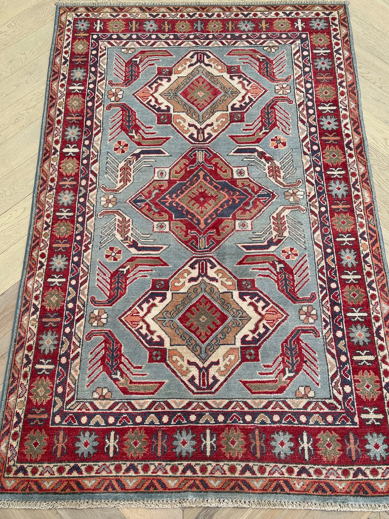 The dyes of these rugs are predominantly extracted from fruits and therefore the colours are very lively. Kazak rugs are made in Afghanistan but originally from Kazakhstan